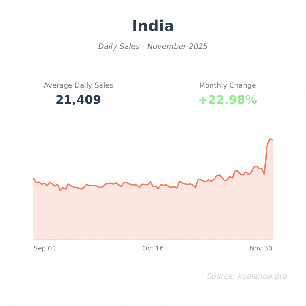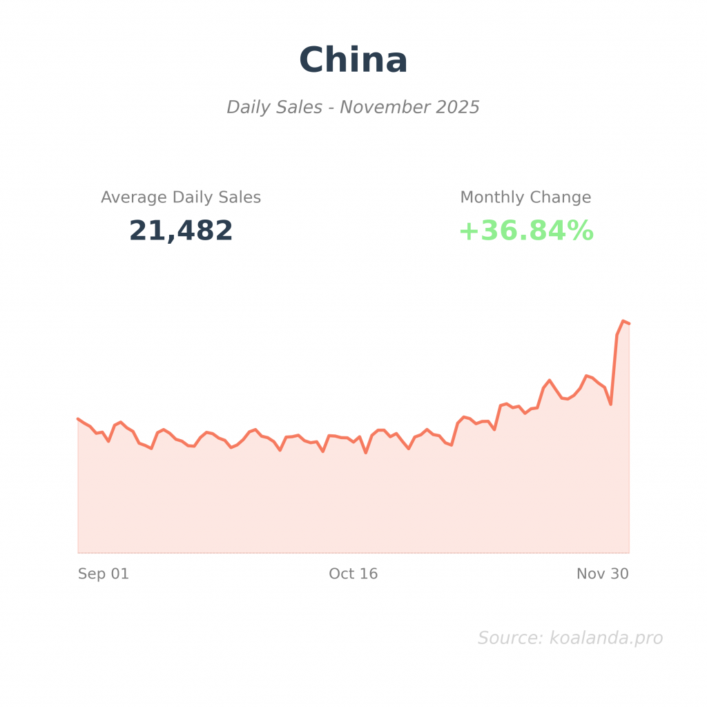 The daily sales chart for November also matters. Peaks around key promotion dates likely concentrate a big portion of monthly revenue into a handful of days. Sellers who were well-prepared with stock, discounts, and fast shipping for those windows likely captured a disproportionate share of this growth, while less prepared shops may have seen only modest improvement despite the strong market.